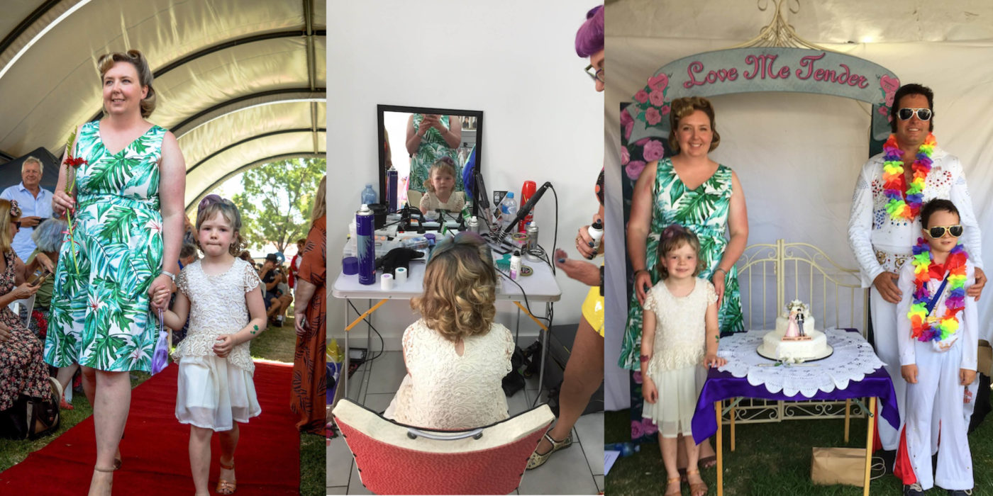 Fast forward 10 years and Stuarts dream of us professing our undying love to each other in front of an Elvis celebrant came true. We celebrated our 10-year wedding anniversary by renewing our vows under the love me tender arch at the Parkes Elvis Festival with Dean Vegas as our Elvis celebrant.