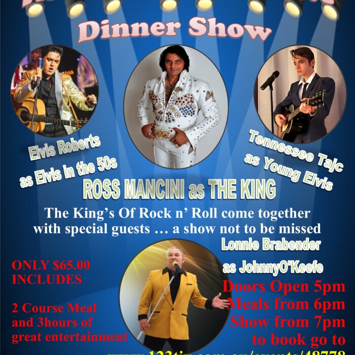 Parkes Favorites, Rising Stars Tennessee Tajc, Elvis Roberts and one of Parkes Favorite ETA’s Ross Mancini will bring the songs of the American King of rock n Roll, whilst Lonnie Brabender will bring Australia’s own King of rock n roll “The Wild One” Johnny O’Keefe …. there may even be a special guest star!!